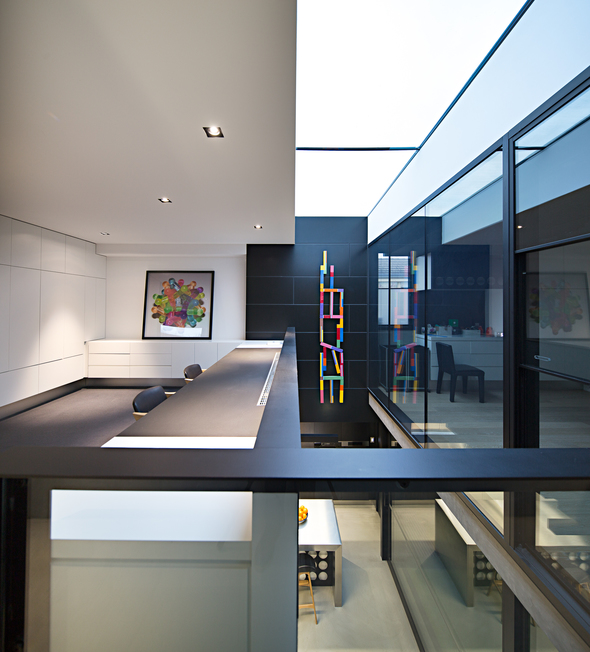 A boldly modernist house designed for a growing family with a love for art and the latest technology. This 3-storey residence is stripped back to the fundamental elements of its construction: concrete, steel and glass.